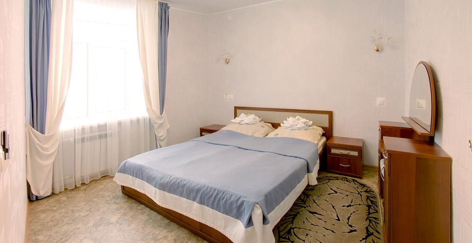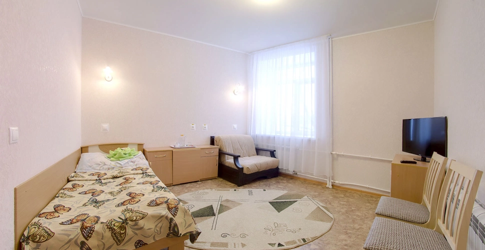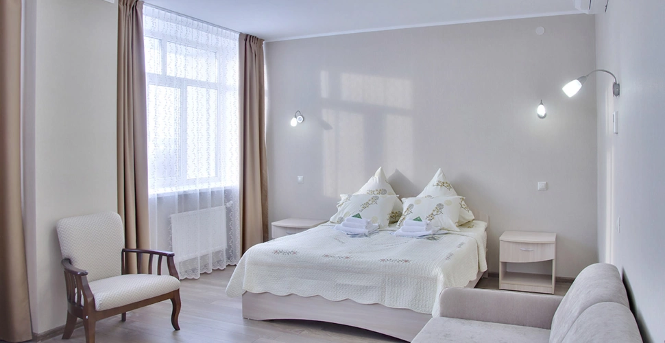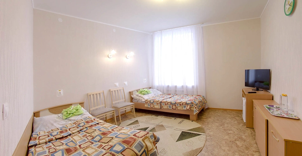 - Корпус №1. Введен в эксплуатацию в 2013 году. Расположен в нижней парковой зоне санатория в живописном месте вблизи пруда, рядом с центральными воротами санатория. Корпус трехэтажный, кирпичный в прямоугольном плане. Комфортабельные номера с удобствами в номере. До столовой и лечебного корпуса 450-500 метров. Всего 31 номер: 23 двухместных (14 м2), 5 одноместных (12 м2) и 3 номера Джуниор сюит (20 м2). Рядом детская площадка, магазин, банкоматы, бильярдный и теннисный залы