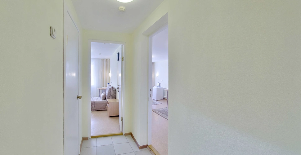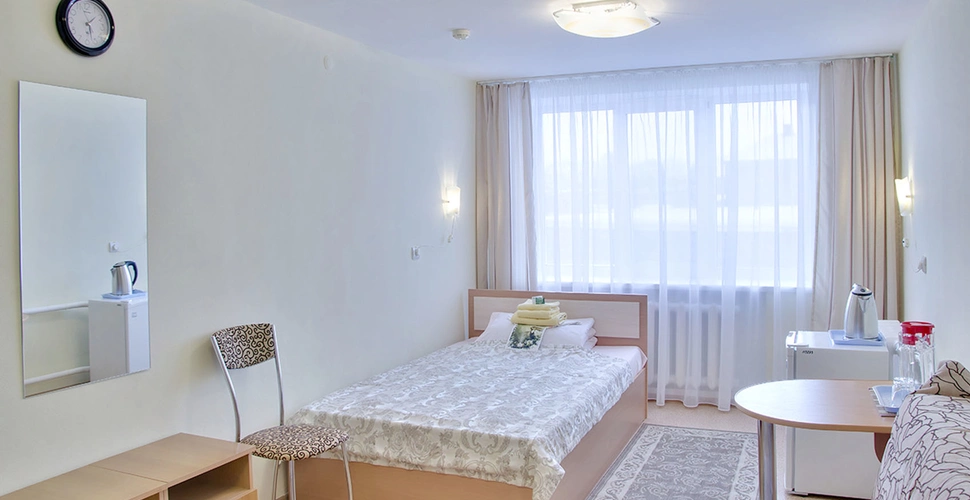 Кровать 1,5 спальная, диван, шкаф, зеркало, стол, стул, телевизор, холодильник. (16 м2)